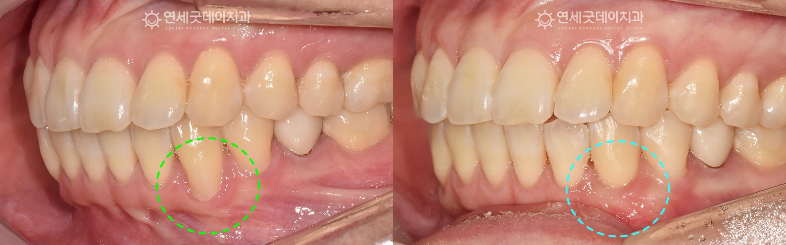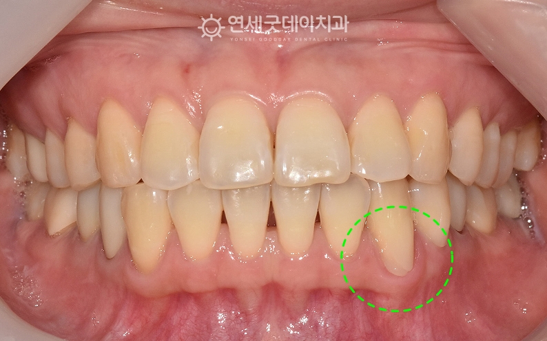 왼쪽 아래 송곳니 잇몸이 내려가서