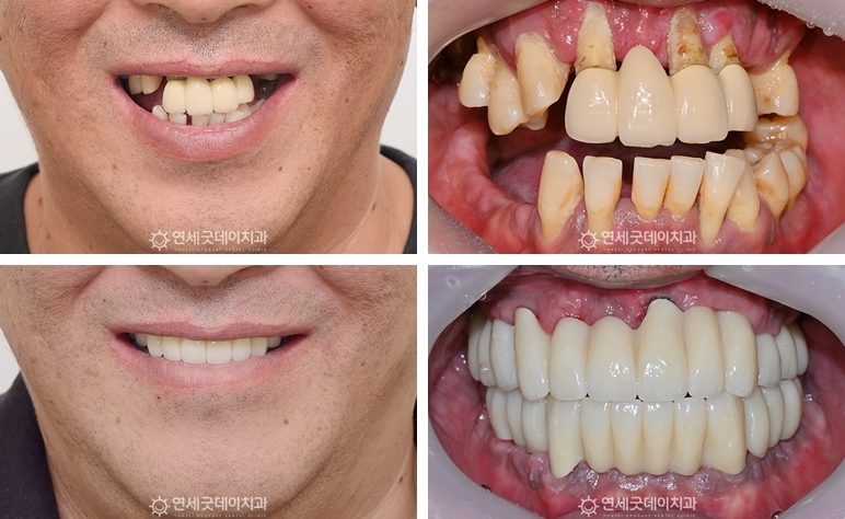 전악 브릿지 임플란트 치료전후 (50대 남성)