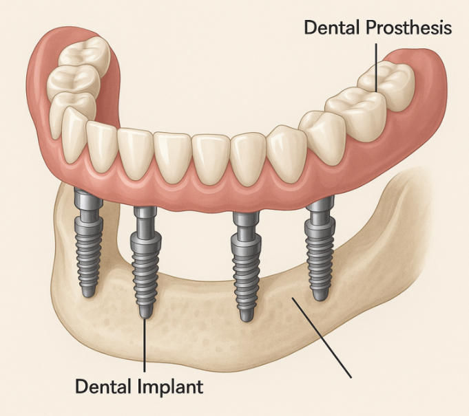 4~6개의 임플란트로 전체 보철을 지지하는
