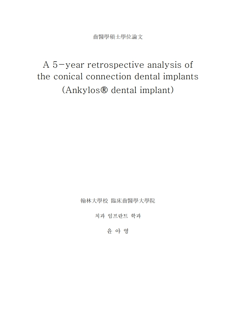 A 5-year retrospective analysis ofthe conical connection dental implants(Ankylos® dental implant)